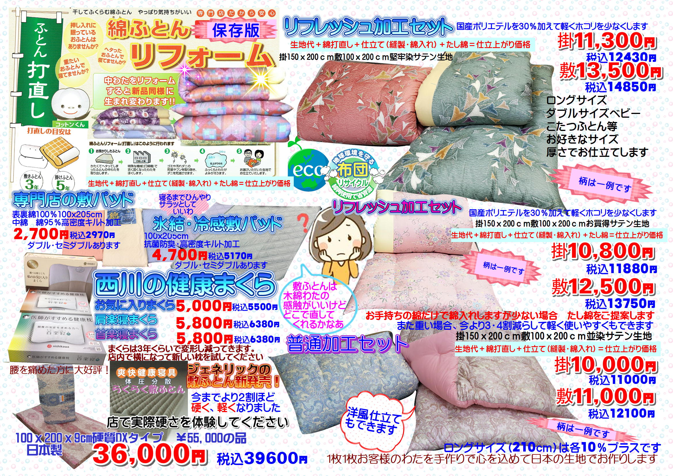投稿日: 2023年6月11日 投稿者: maru38例年の梅雨入りです。 本日 北陸・東北地方の梅雨入りがいられると発表されました。 うっとうしい季節ながら、 雨も大事な資源でなくては困りますが ほどほどに、ゆっくりと、広く平らに降ってほしいものです。 この機会に、押し入れの掃除・点検をしませんか? 今年は、 長岡花火も例年通り行われます。 4年ぶりに、ご親戚家族で集まる機会も増えます。 また、 今回 らくらく敷ふとんも店内での体験会も 喜ばれております。 是非 実際に触って横になって体験してください。 今夏 本麻敷パットも ご用意しました。 アツぐるしい 夜を天然繊維の良さを感じてください。